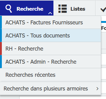 Exemple avec la recherche " Tous documents " de l'amoire ACHATS