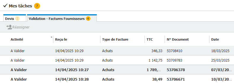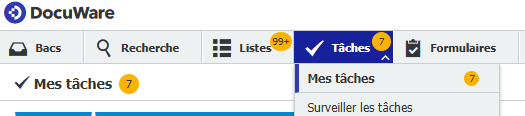 Pour valider des tâches sur DocuWare, accédez à l’onglet "Tâches".