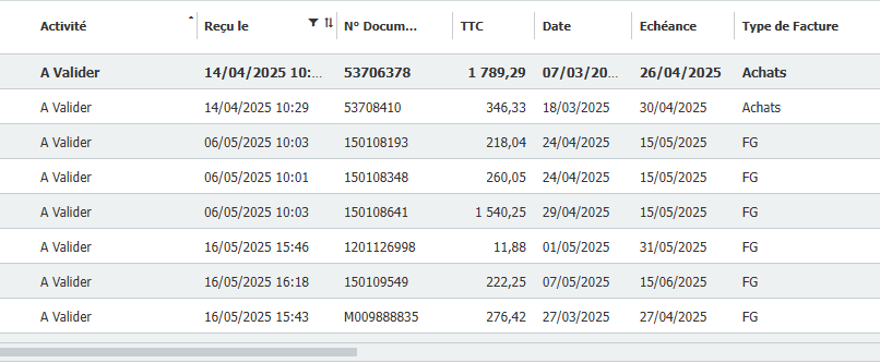 Comme ici ou nous pouvons voir l'ensemble des tâches "A Valider" que nous pouvons filtrer sur plusieurs champs comme la Date par exemple.