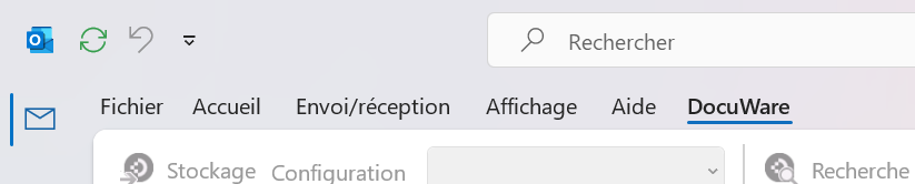 Après l’installation du module DocuWare pour Outlook, une nouvelle icône "DocuWare" doit apparaître dans le ruban.